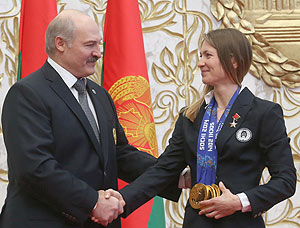 “By winning three gold medals at one Olympics, you, Dasha, has become a legend of the world sport. Today your sport and civil deed is honored with the highest decoration of the country - the Hero of Belarus. We have very few of them,” Alexander Lukashenko stressed.