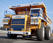 Усовершенствованный роботизированный карьерный самосвал грузоподъемностью 130 т, а также самосвалы грузоподъемностью 90 т БелАЗ-75580, БелАЗ-75581 с электромеханической трансмиссией представили сегодня широкой общественности в Жодино, передает корреспондент БЕЛТА.