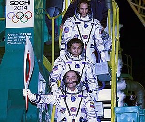 Пилотируемый корабль "Союз" улетел с Байконура к МКС с олимпийским факелом "Сочи-2014" на борту